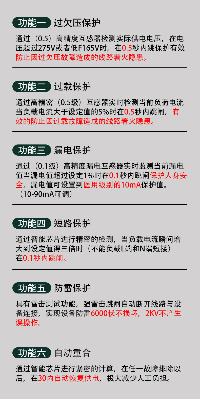 自动重合闸保护器漏电开关断路器开关电源防雷220v智能空开家用