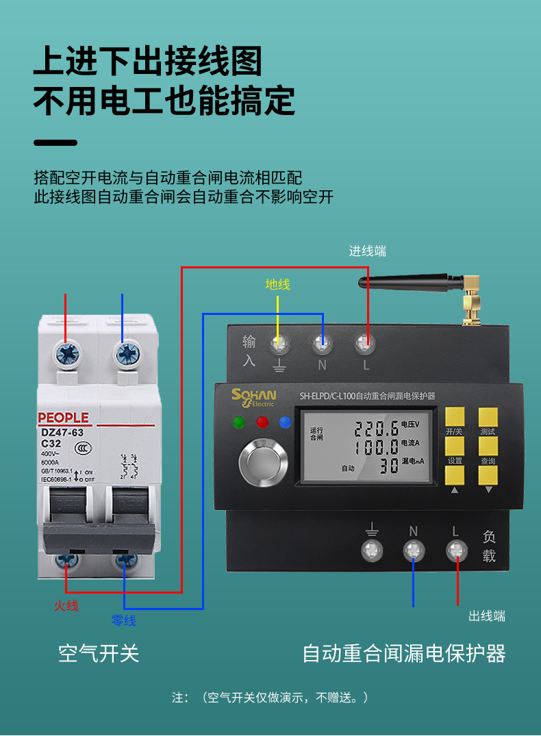 自动重合闸漏电保护器家用防雷开关智能空开220V断路器2P63A